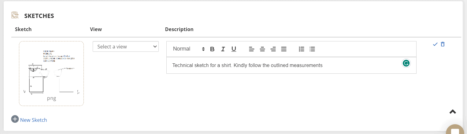 In addition, you can upload your sketches and add descriptive notes to them, making it easy for your manufacturer to understand your sketches. You can always edit or delete the notes whenever you want.
