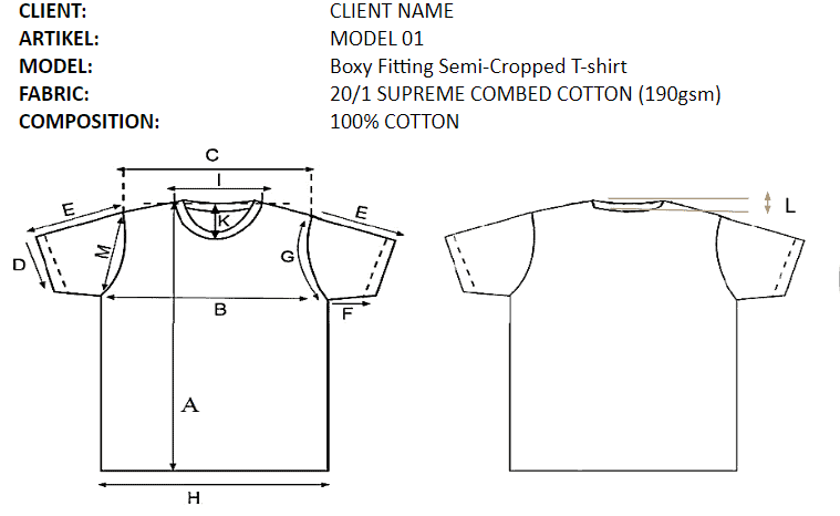 The measurement specification sheet, as the name implies, is where you detail your garment measurements as accurately as possible. Ensure that the measurement for every component, even to the minutest detail, is properly highlighted to avoid sewing errors.