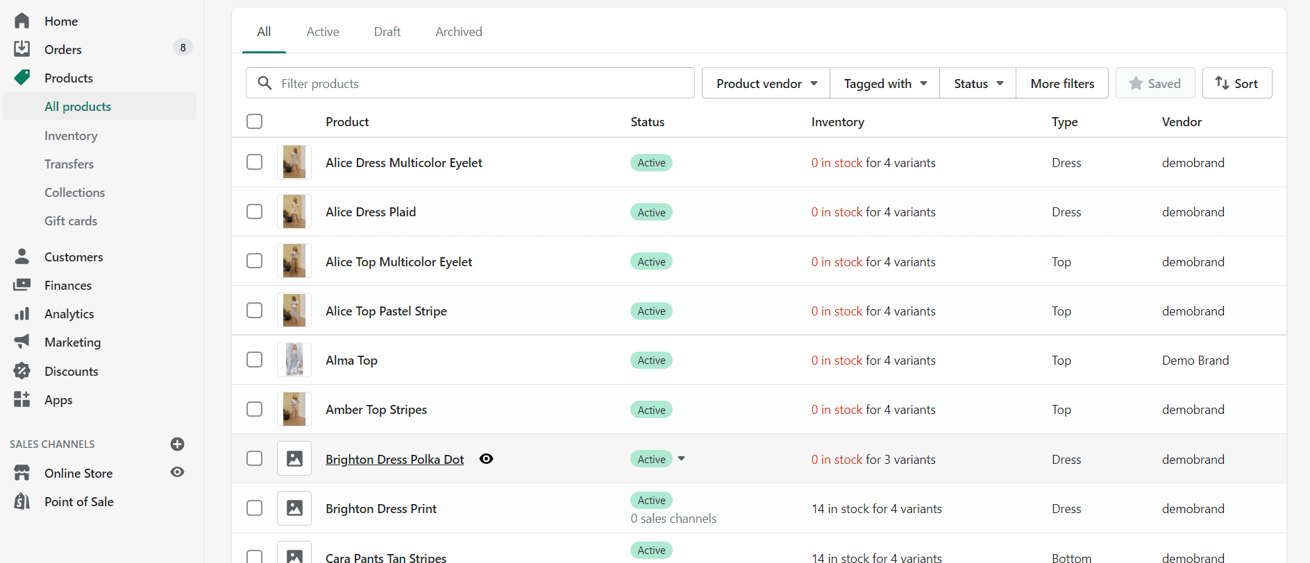 This feature allows Shopify store owners to view stock count for their products. It also allows you to sort through products using filters.