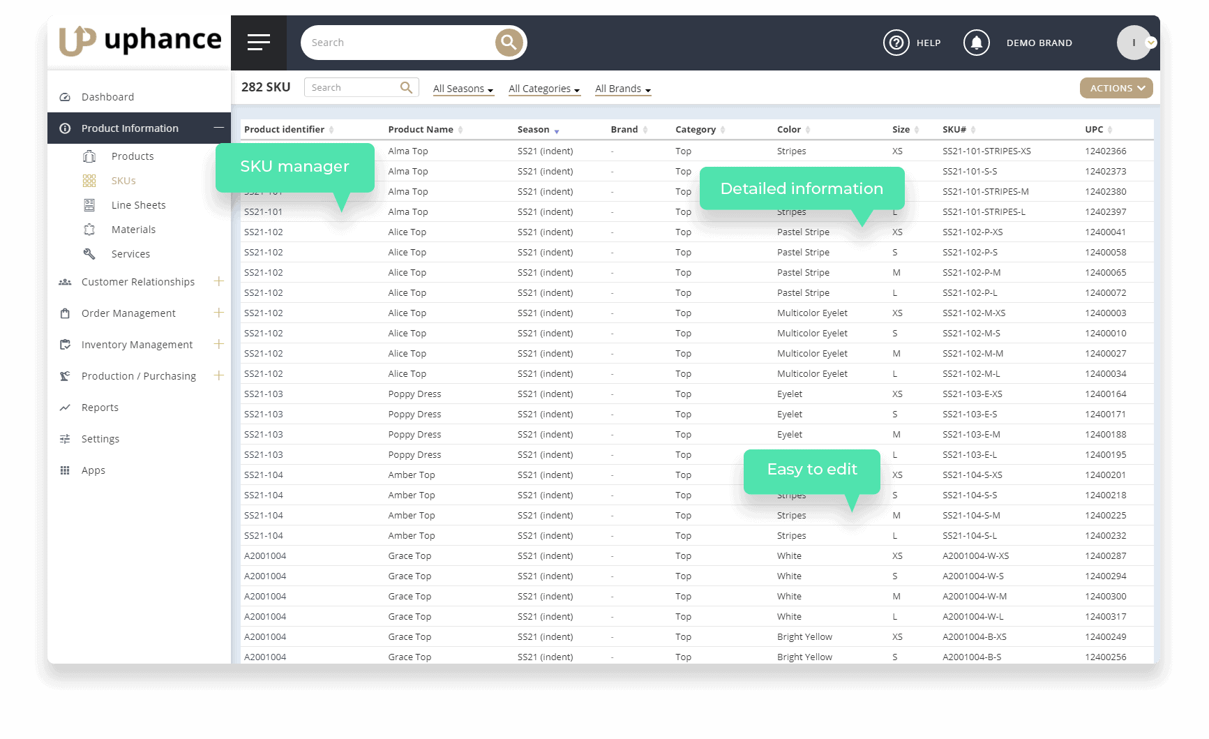 An Enterprise Resource Planning (ERP) software solution essentially covers all aspects of your business planning. This saves you the cost of subscribing to multiple inventory management and business planning solutions that could significantly add up. An ERP software solution typically opens you up to more advanced functionalities that ultimately enhance your operations and scale seamlessly. Uphance offers an ERP software dedicated to apparel businesses.