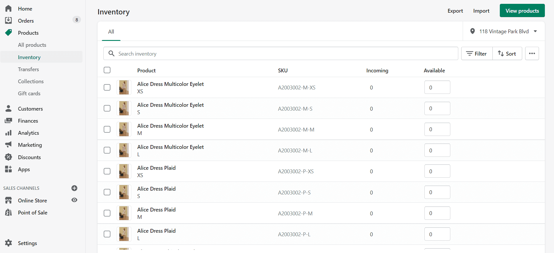 Shopify’s inventory editor will allow you to adjust inventory quantities for products in your store in bulk. Bulk inventory updates can also be applied to multiple product variations across your store.